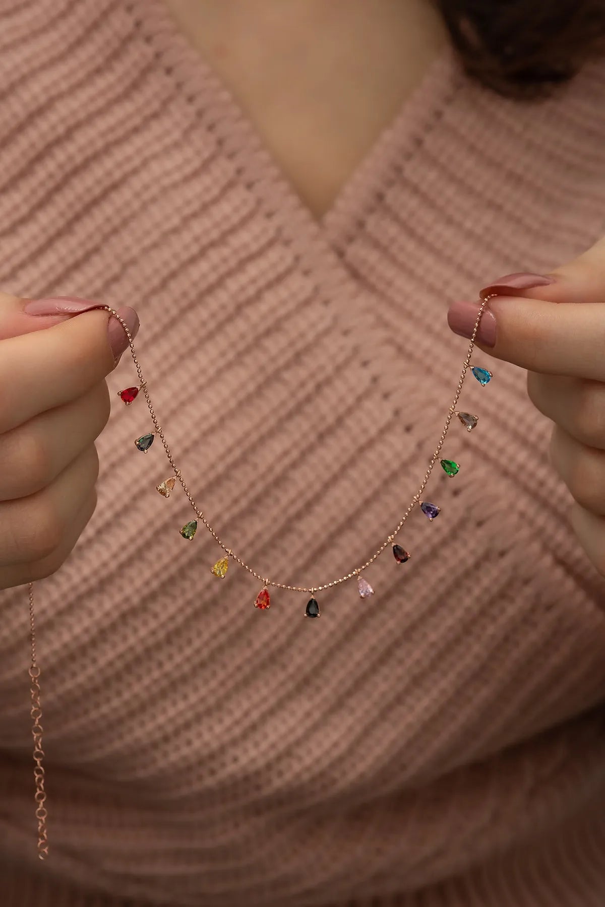 925 Sterling Silver Necklace with Drop Mix Stones