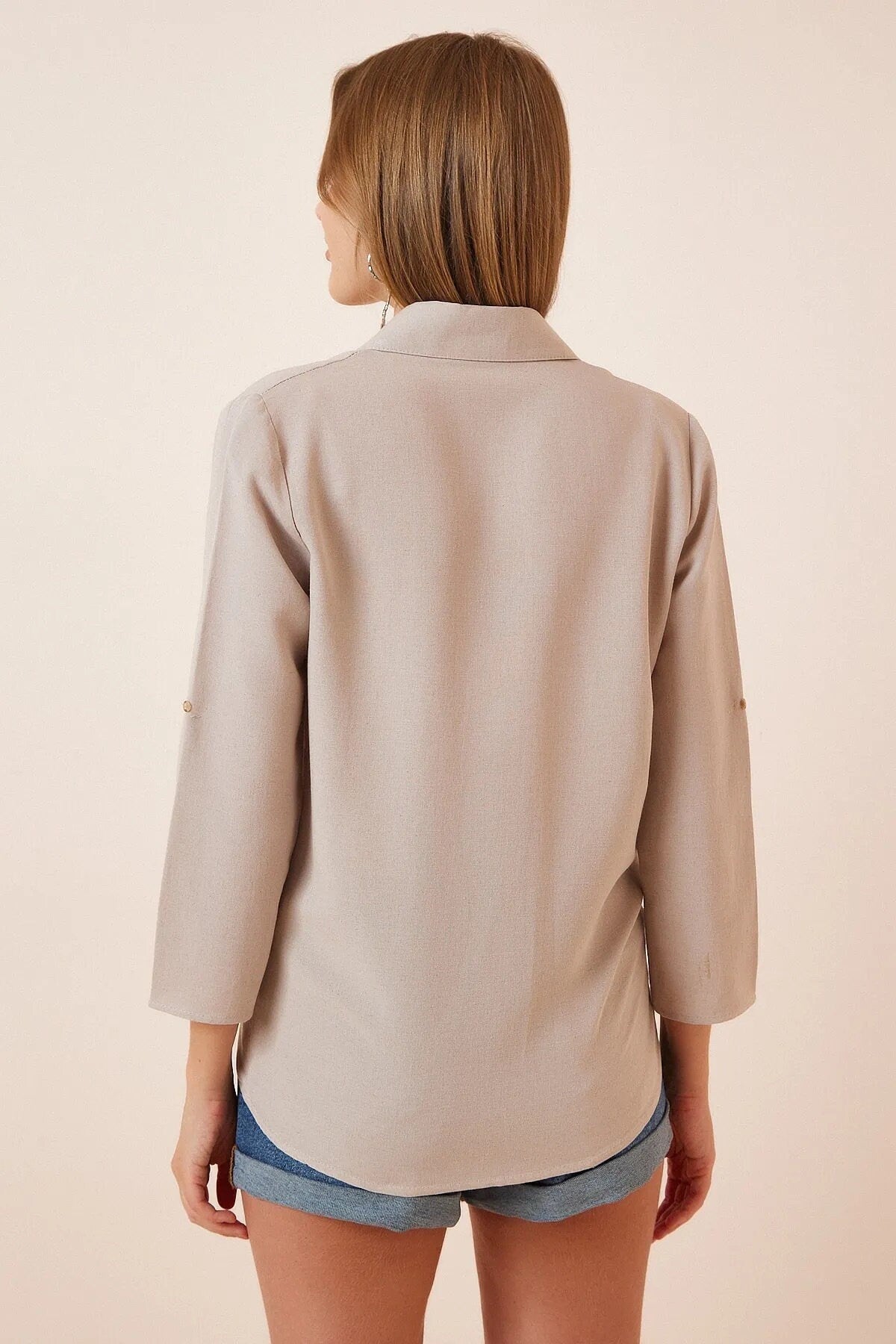 This linen blend shirt seamlessly blends comfort and style, making it an ideal choice for both casual and formal settings.