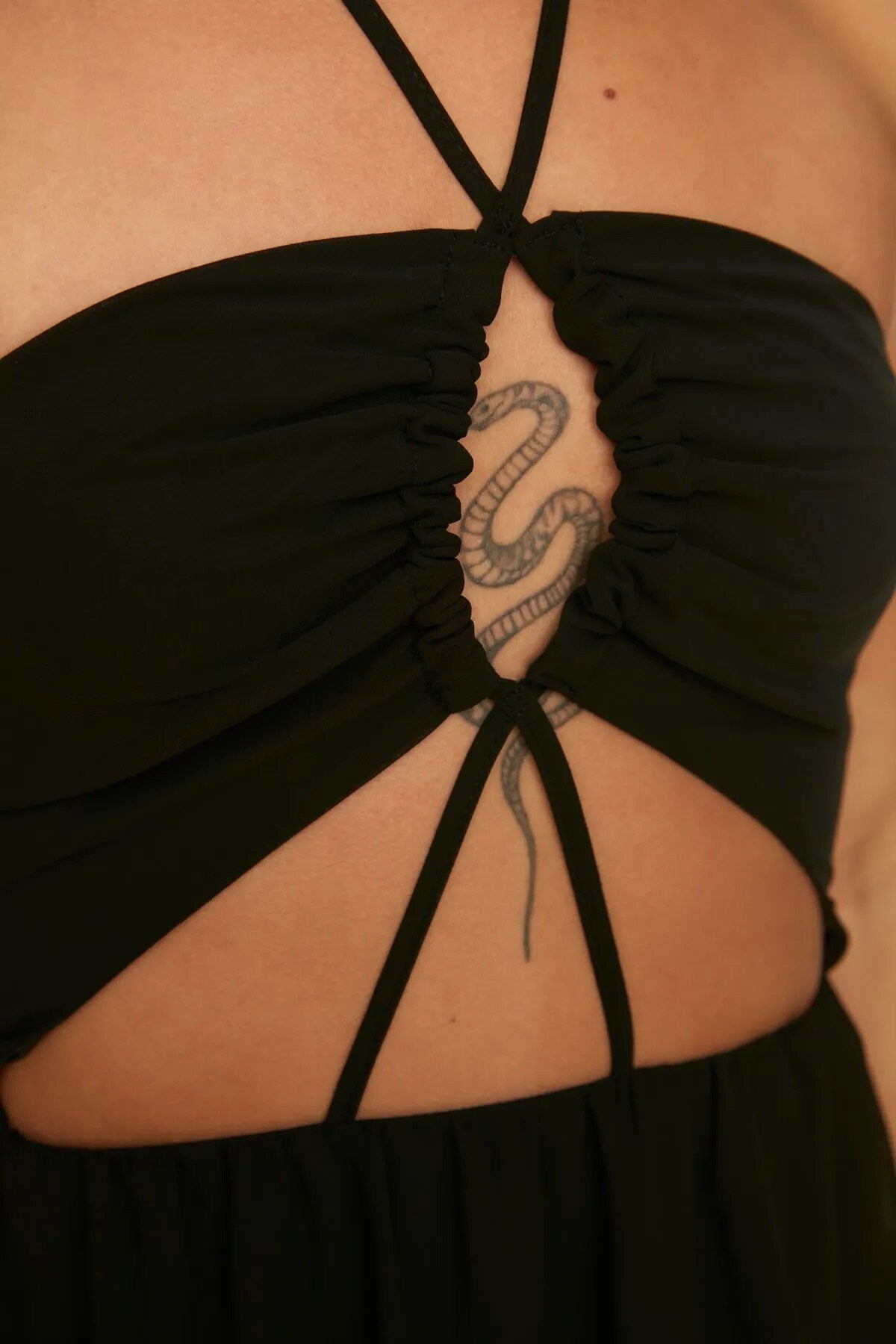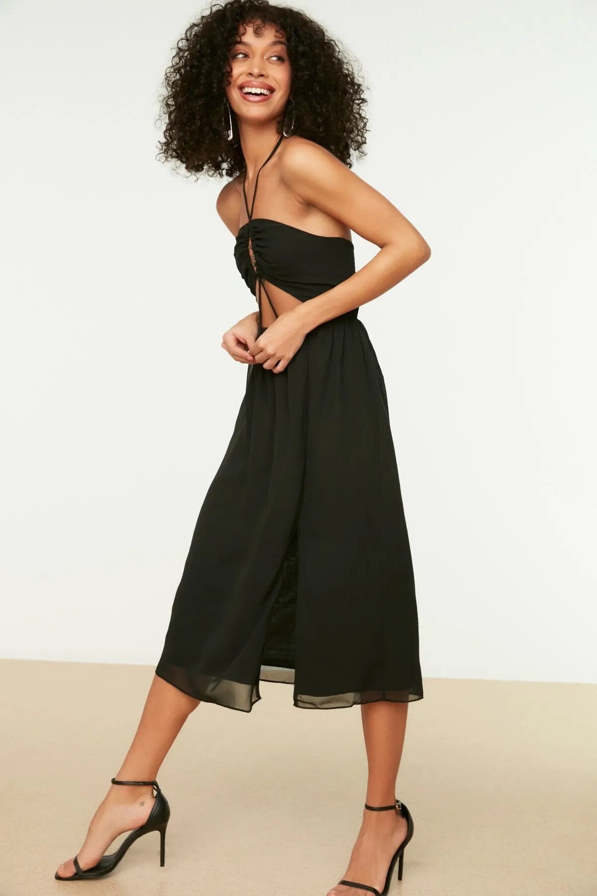 Black Open Back Chiffon Summer Dress with Side Slit