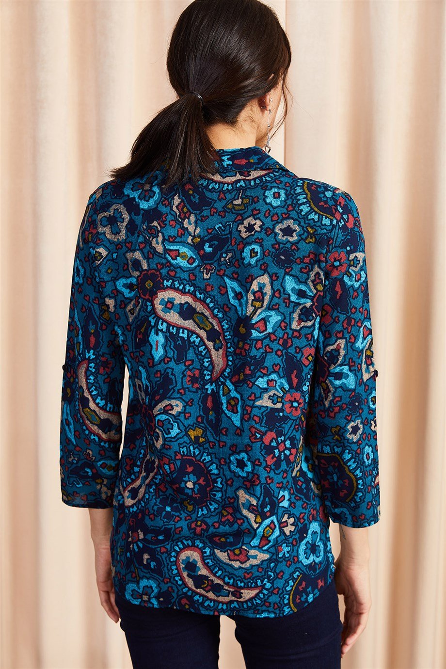 - Vivid Paisley Patterns: Adorned with an eye-catching paisley design, the blouse infuses your wardrobe with a dash of eclectic charm and color.