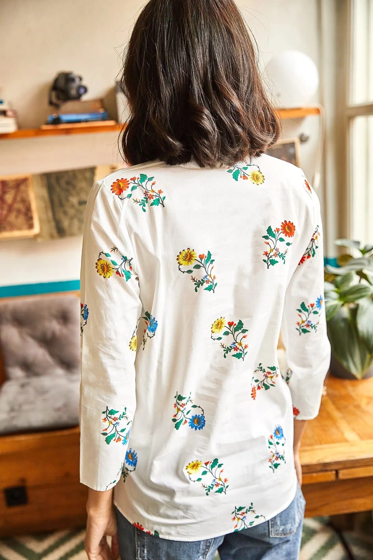 - Vivid Paisley Patterns: Adorned with an eye-catching paisley design, the blouse infuses your wardrobe with a dash of eclectic charm and color.