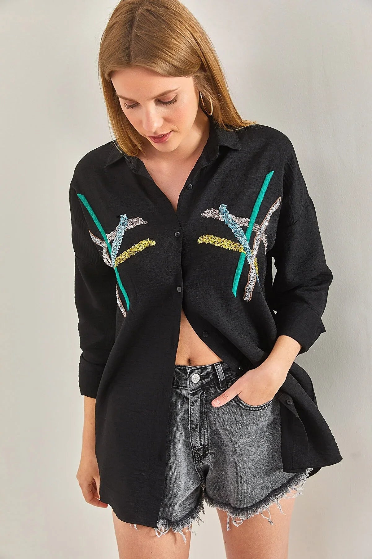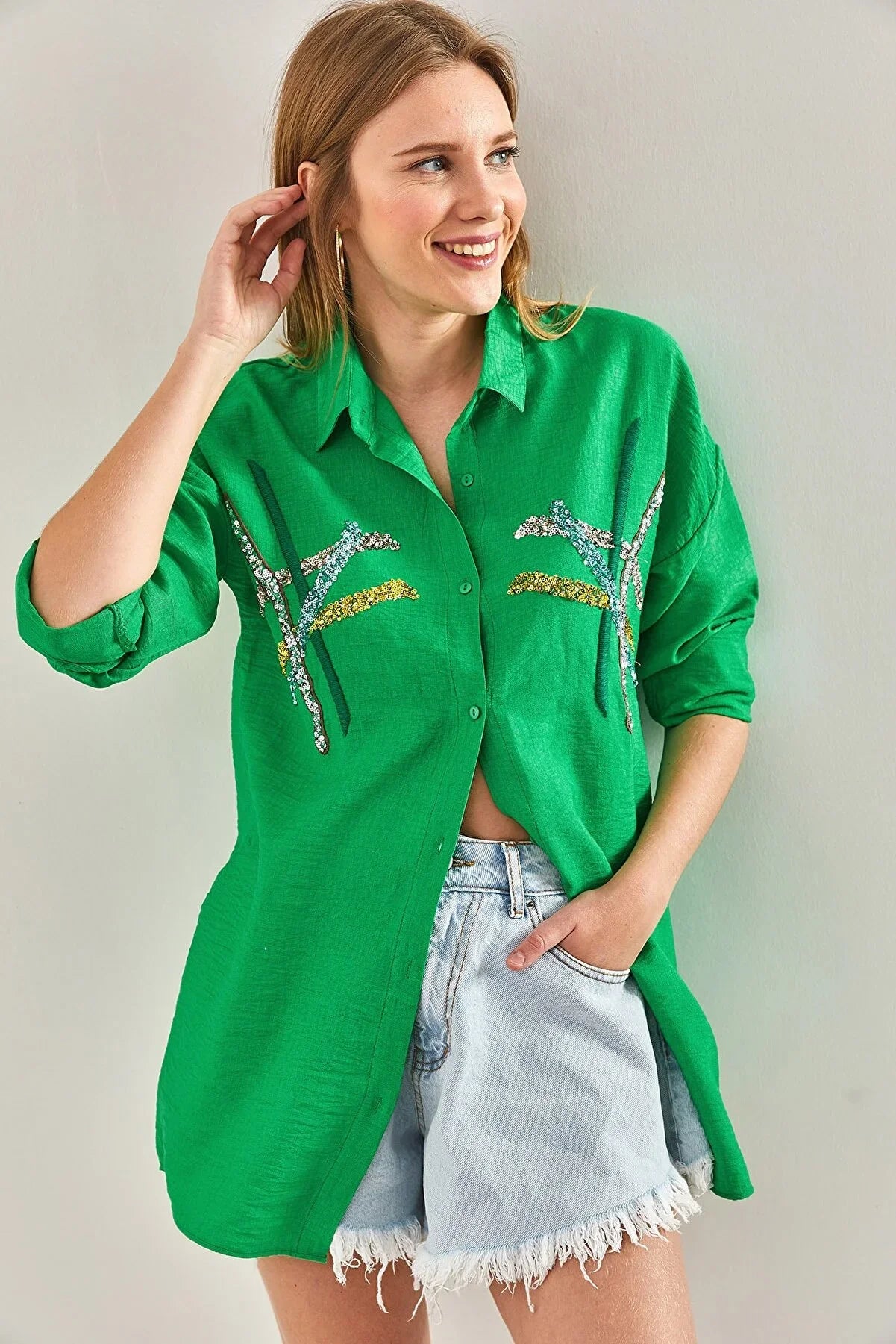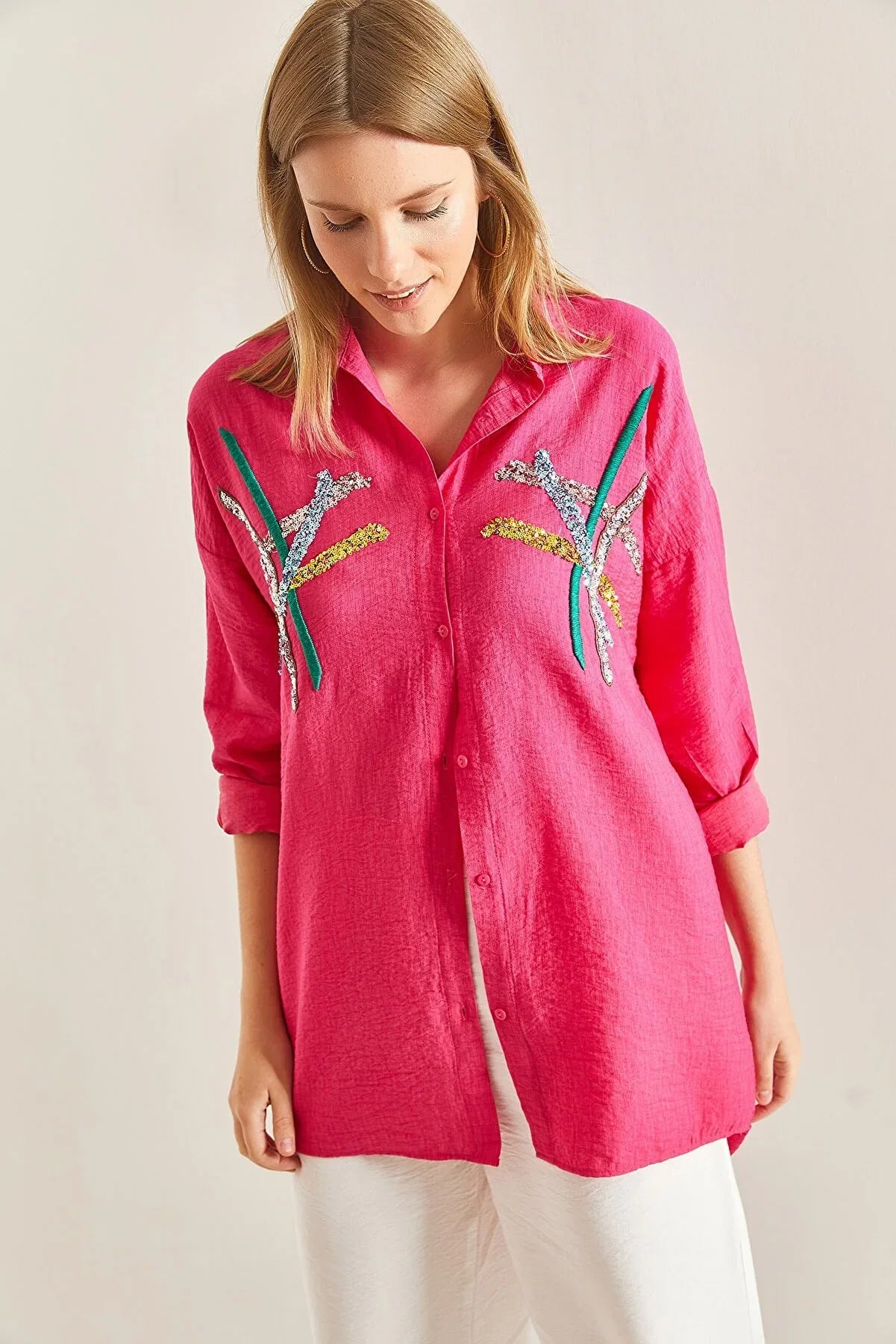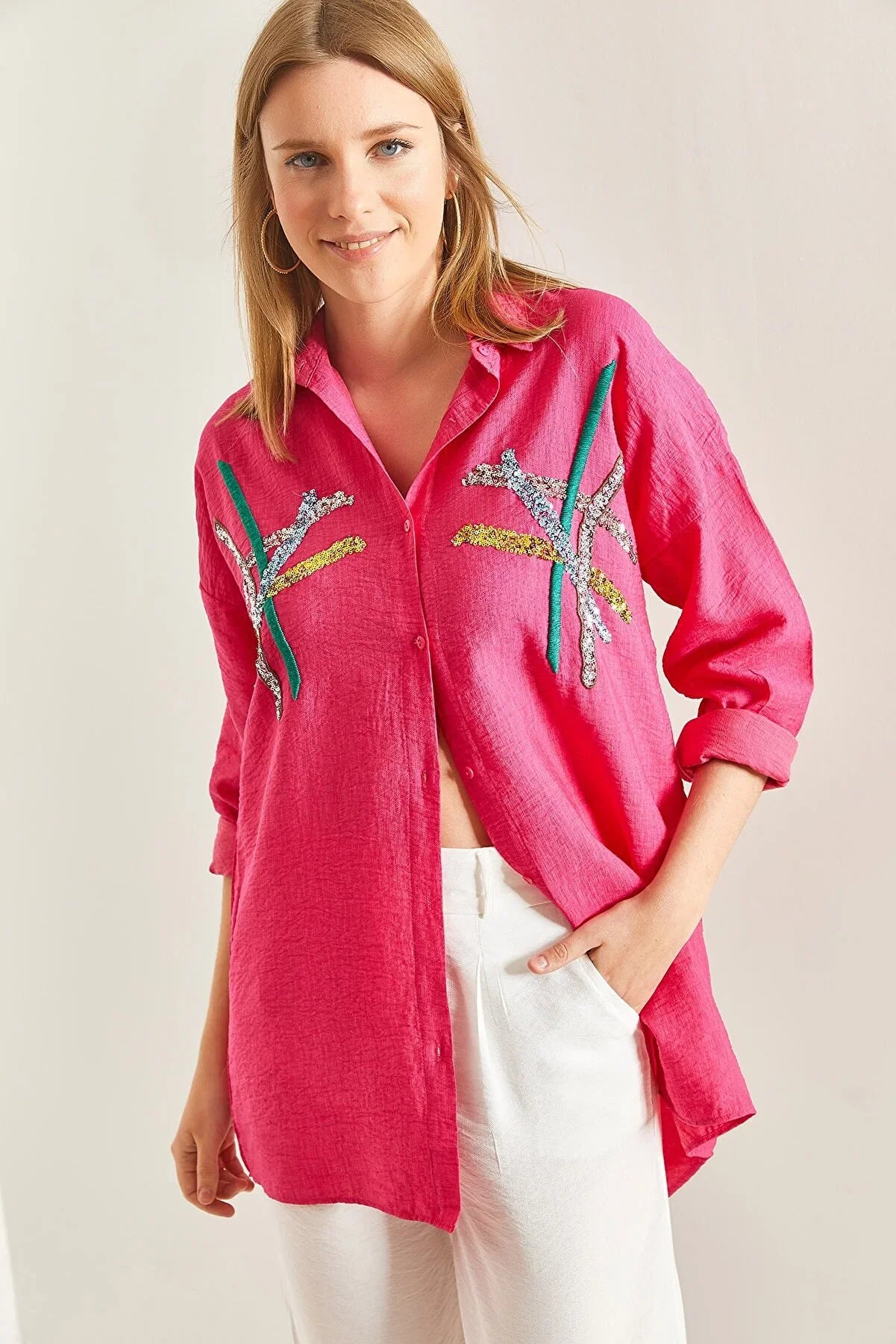 "Cotton Beige Designer Sequin Blouse"