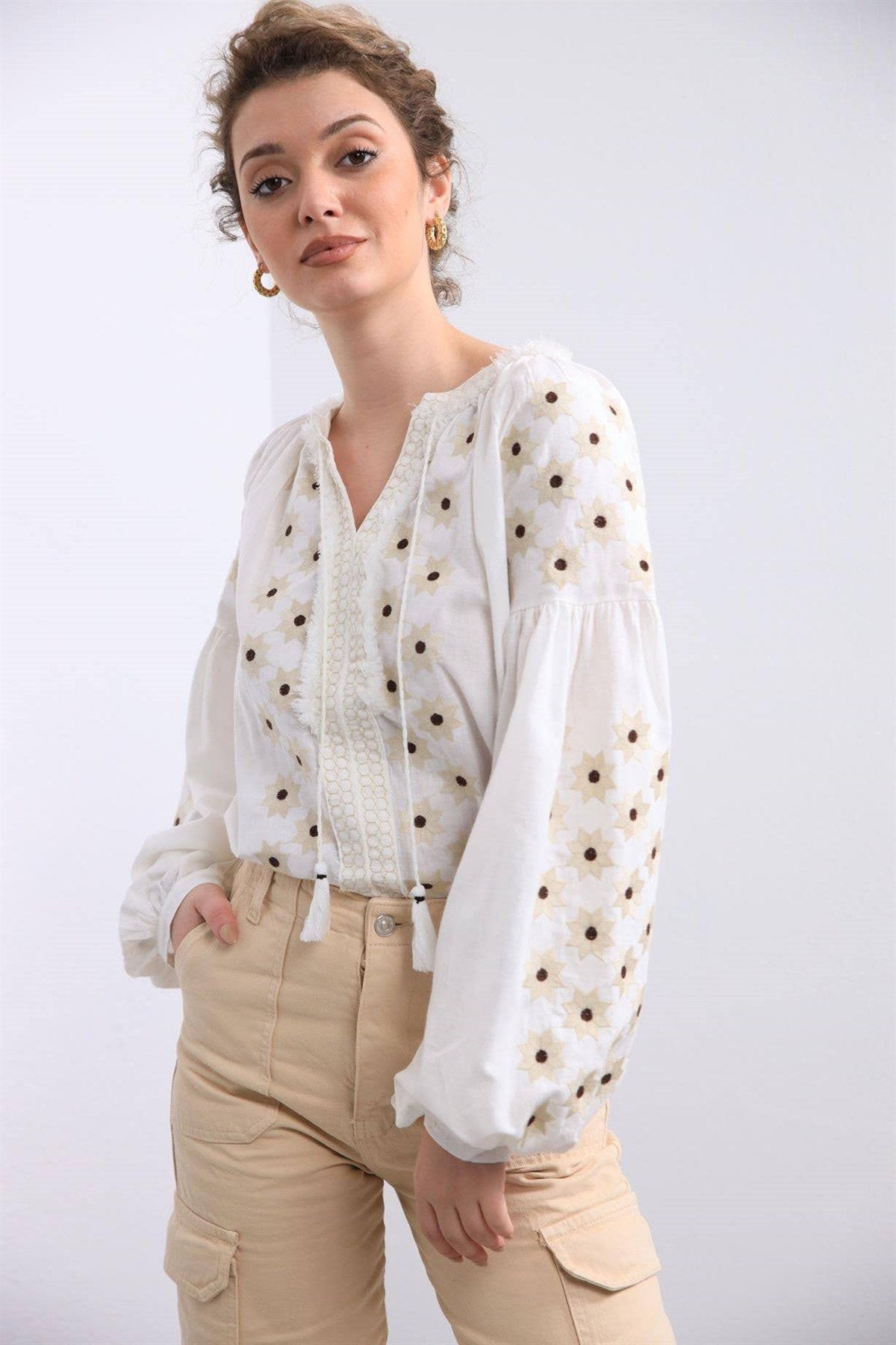 Ecru Floral Star Embroidered Ukrainian Blouse