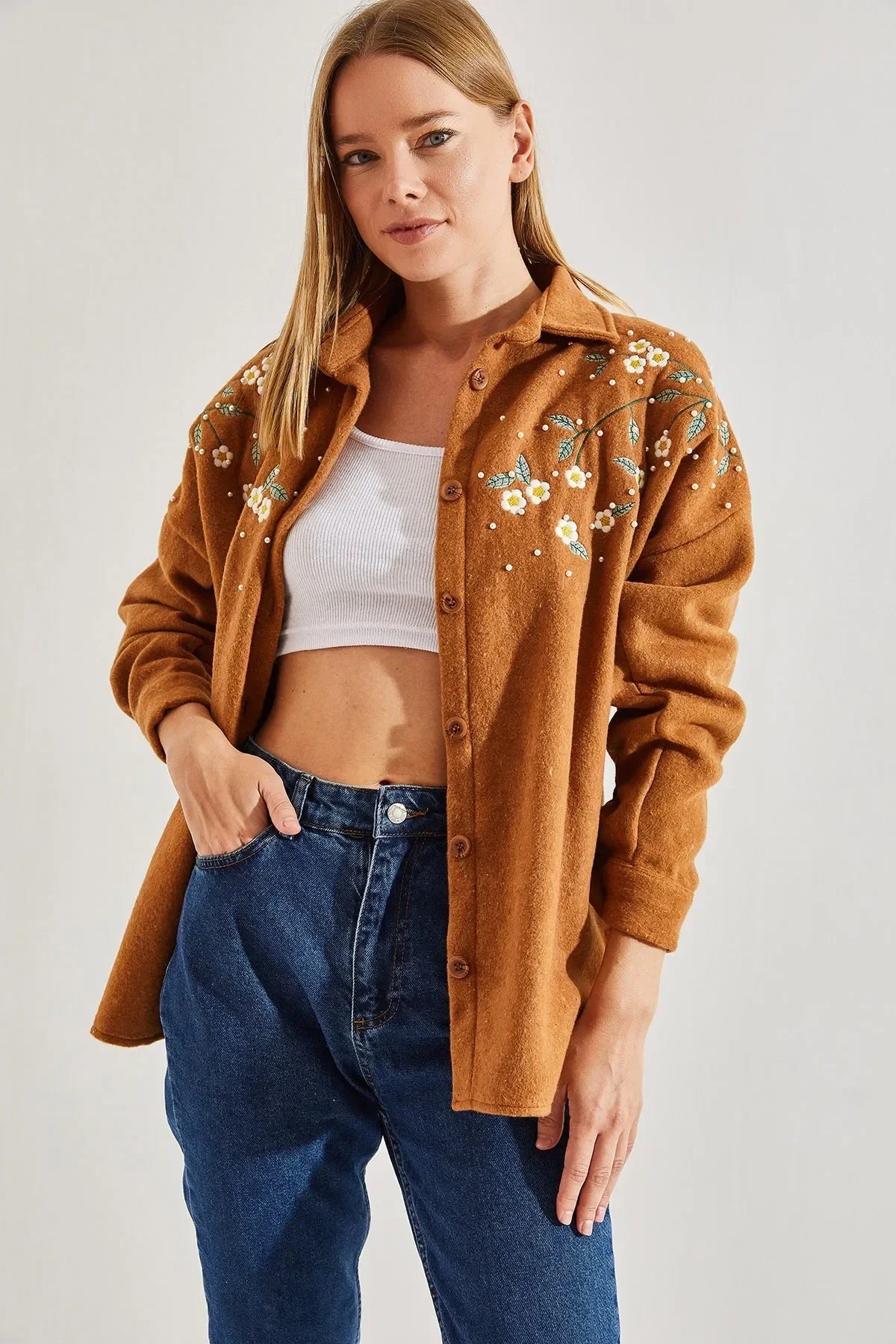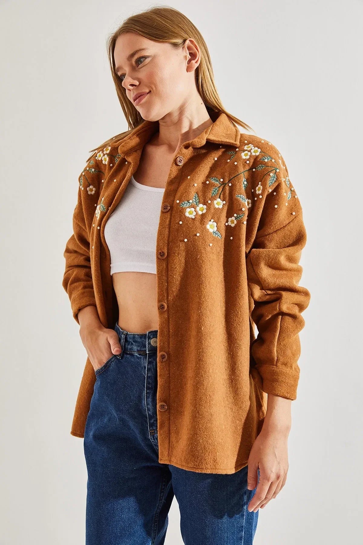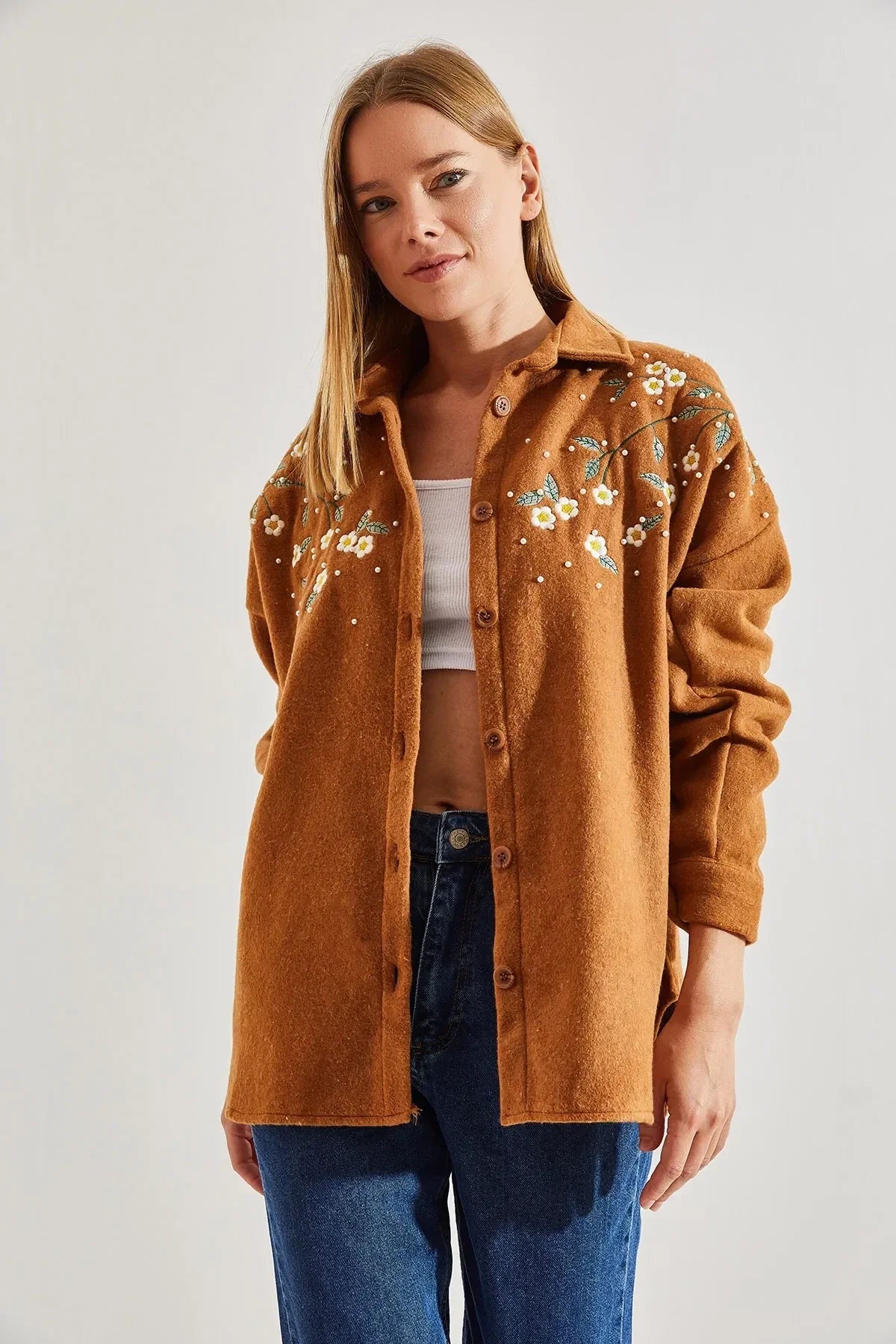 "Lavender Cotton Daisy Embroidered Shaket"