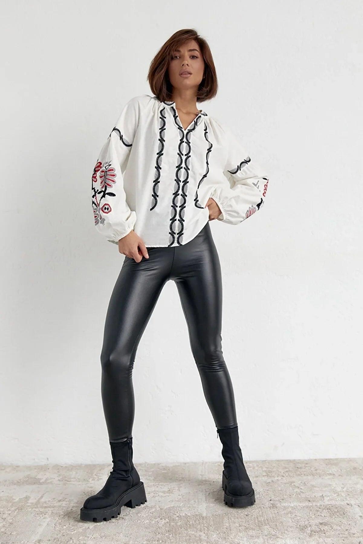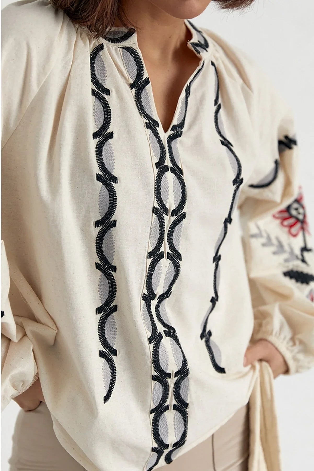 Vivacious Vyshyvanka: Embroidered Cotton Boho Blouse"