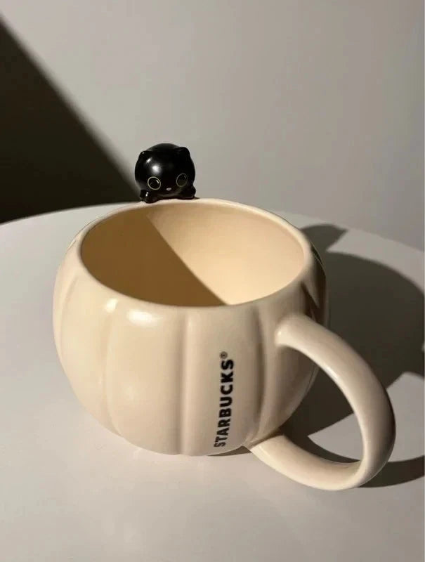 Starbucks Mug Ceramic Autumn Europe Pumpkin Black Peep Cat Halloween 12oz 2025