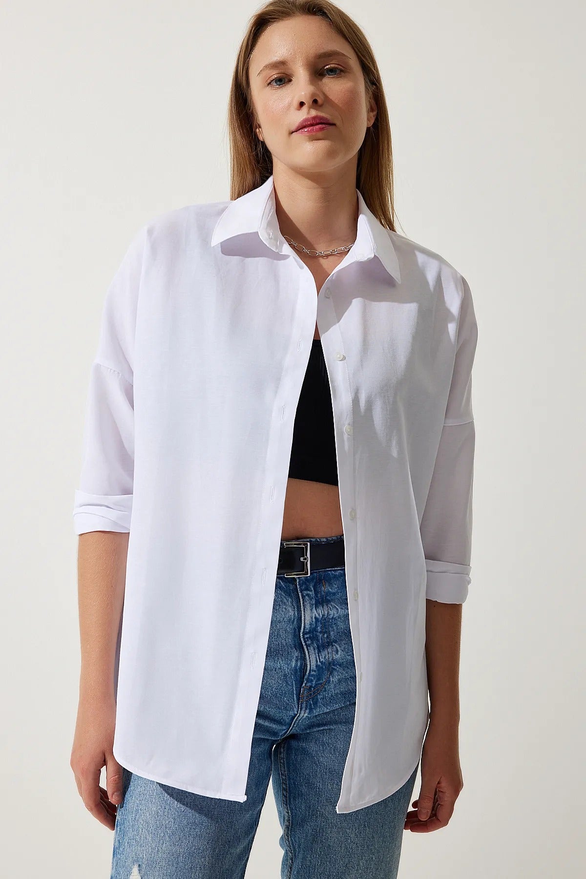 White Loose Fit Button Down Shirt